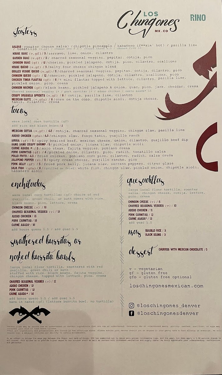 Los Chingones RiNo Menu
